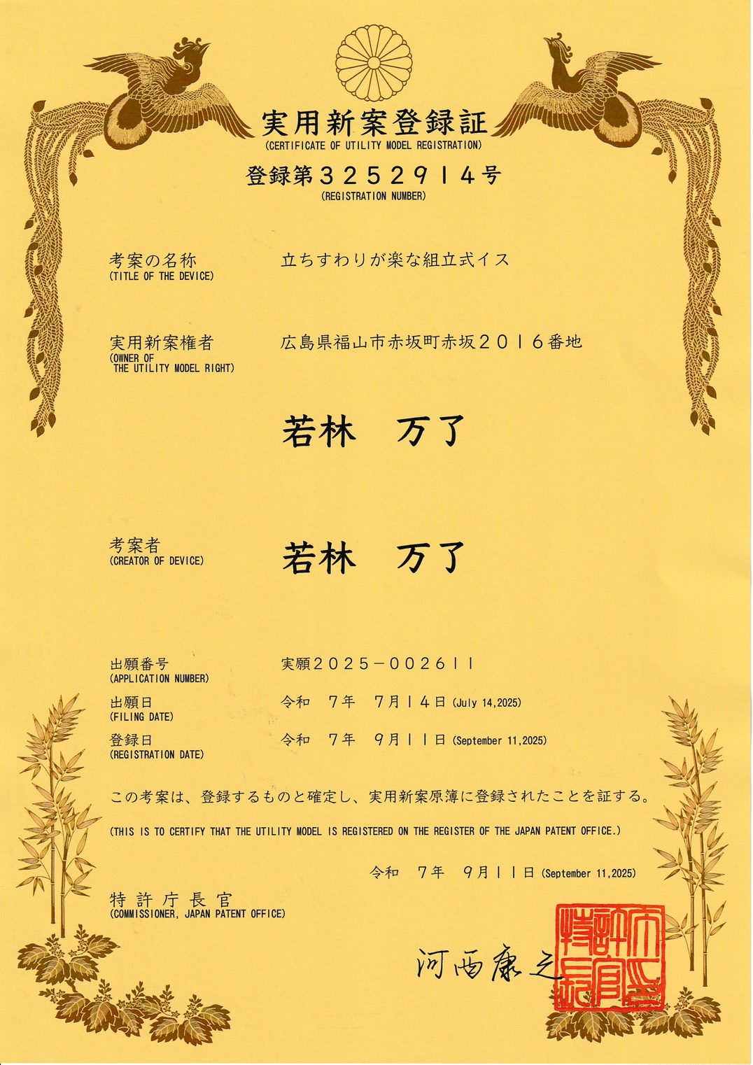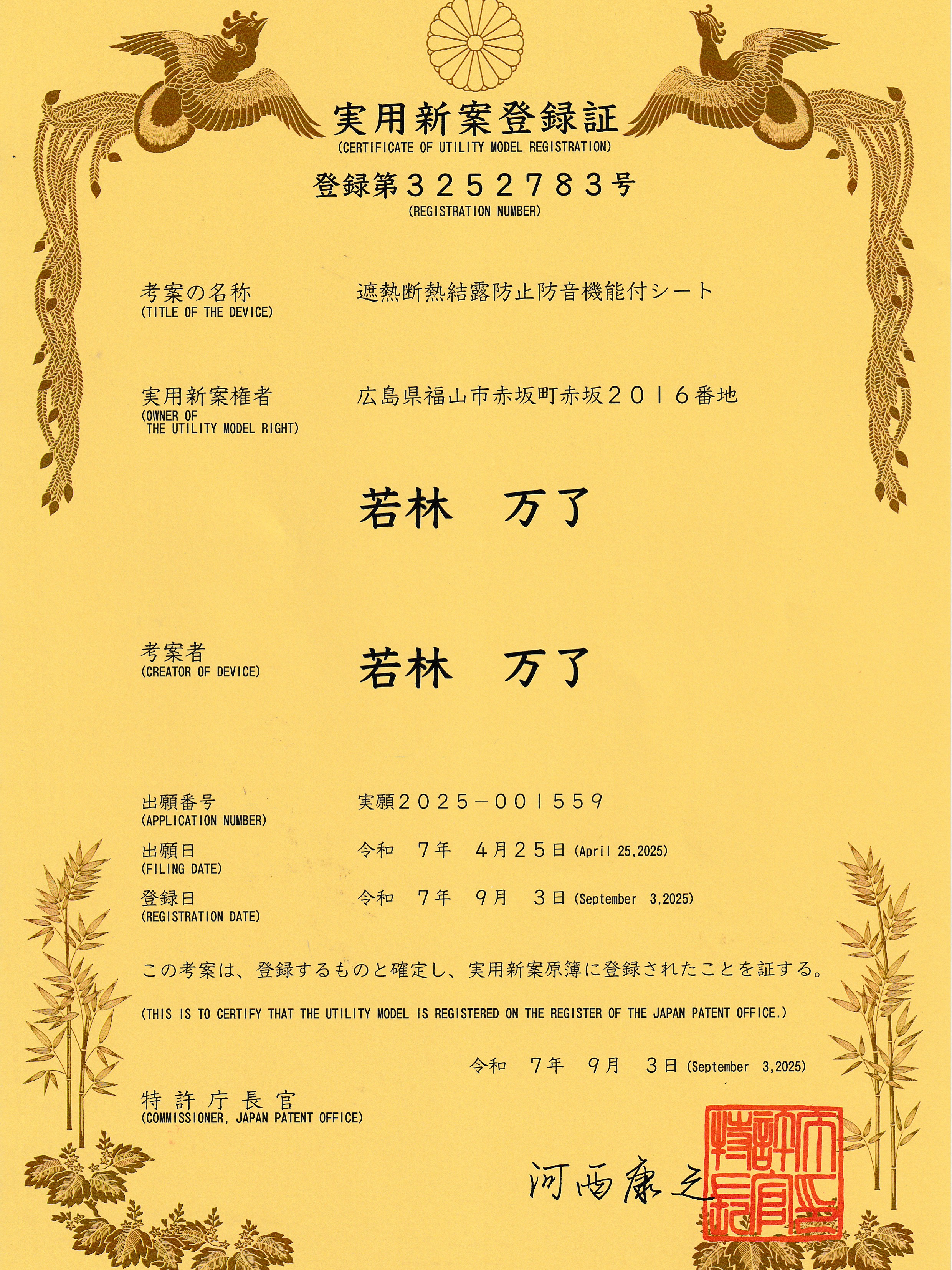実用新案取得(実登3252783)